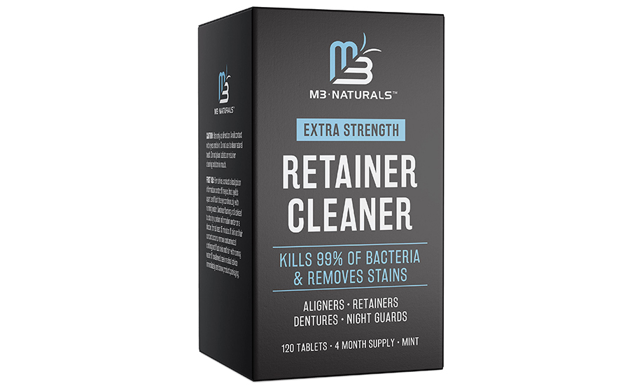Retainer Cleaner and Soak Container, No-Mess Cleaning Tablets with Universal Denture Bath Case and Strainer, Multipurpose, for Mouth Guard Stains, Odor, and Plaque (92 Tablets + 1 Bath) by M3 Naturals(Overnight Whitening (120 Count))