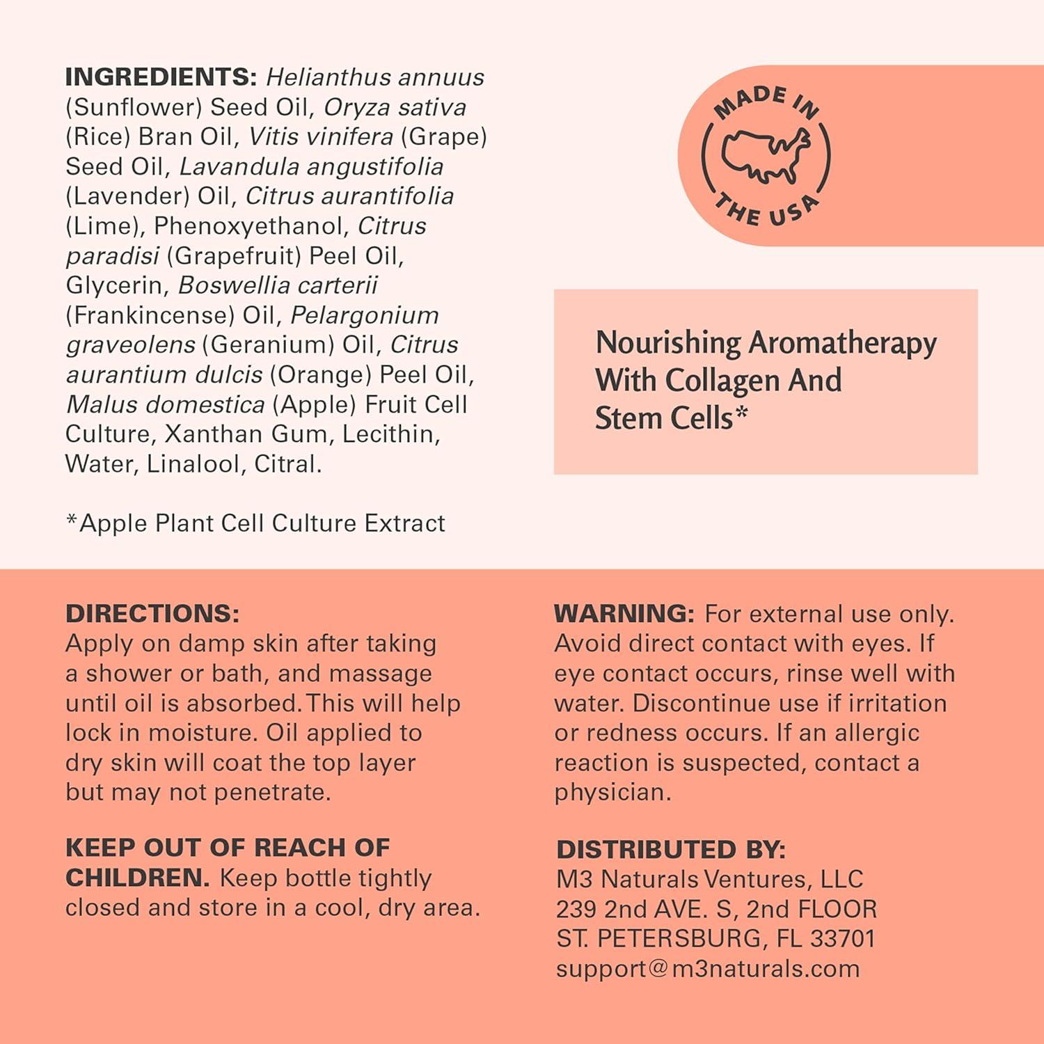 Crafted for Daily Confidence: This skin-smoothing massage oil is made in USA with domestic and globally sourced ingredients, offering targeted care for areas like the thighs, belly, and bum to help you feel toned, refreshed, and ready to take on the day. M3 Naturals is a brand that contains products that contain natural ingredients and other ingredients.