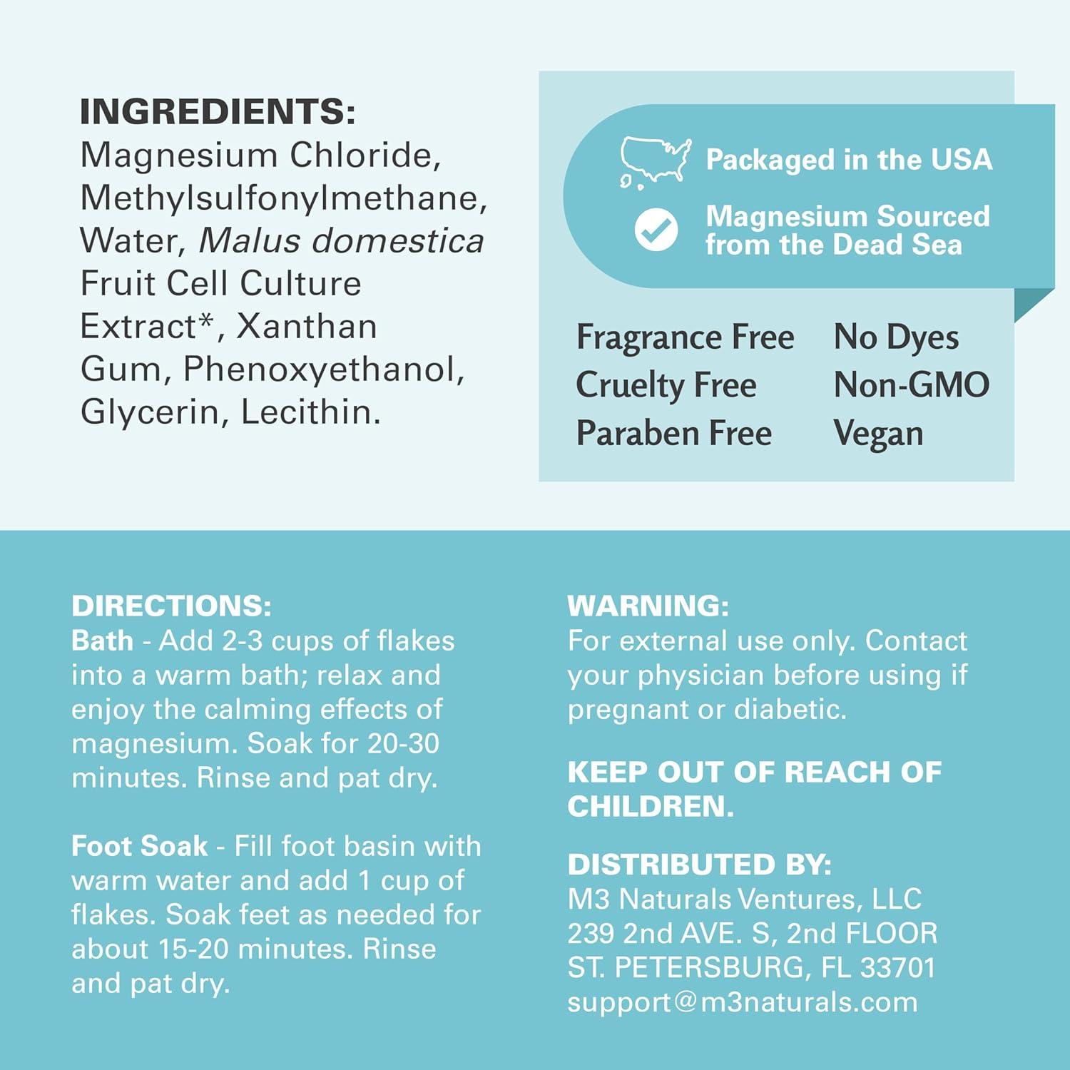 Effective Ingredients Only: Our Magnesium Flakes are meticulously crafted & examined to ensure that these restorative flakes give you a relaxing experience when you need it the most. Restore healthier skin with a dye-free, paraben-free & vegan formula. Made in USA with domestic and globally sourced ingredients. M3 Naturals is a brand that contains products that contain natural ingredients and other ingredients.